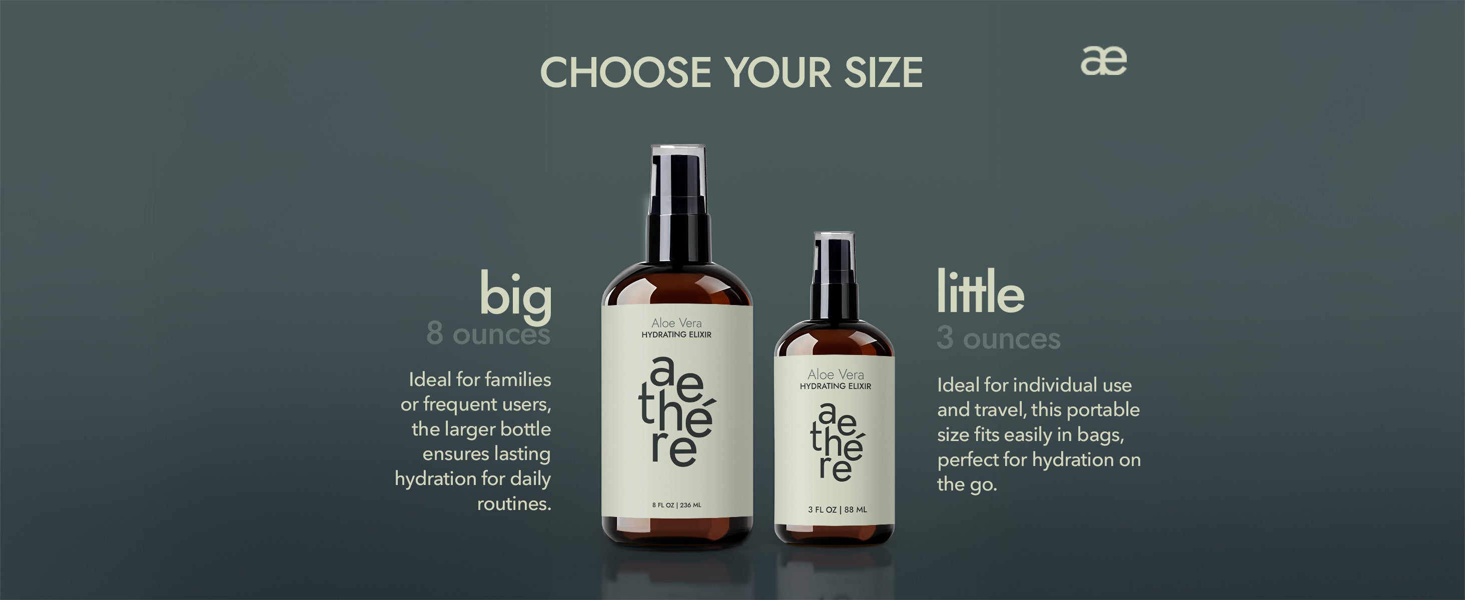 Aethére's Aloe Vera features cold-pressed organic aloe vera for deep hydration and soothing relief, even for sensitive skin. With added plant-based extracts and natural moisturizers, it provides rich nutrients and exceptional moisture retention, perfect for revitalizing and calming the skin.